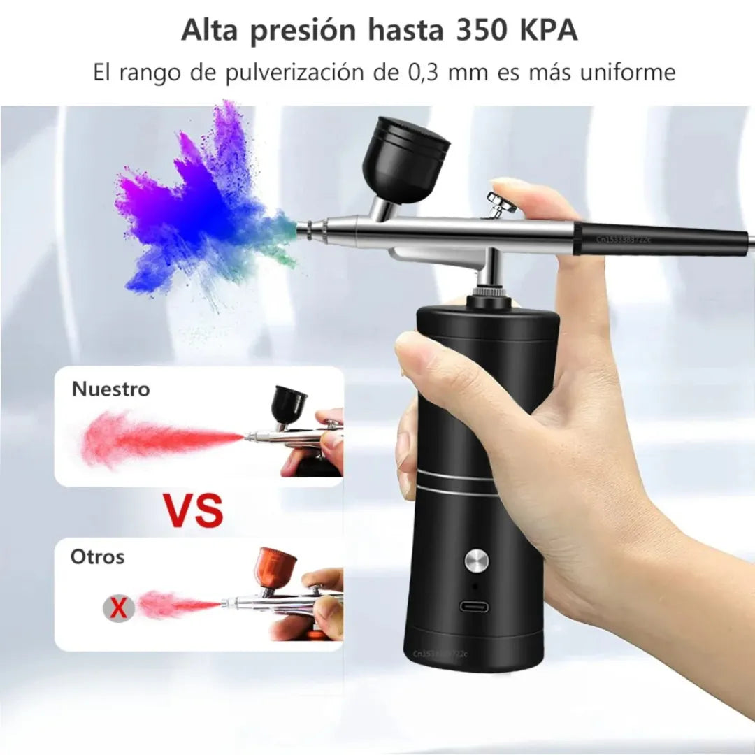 El paquete contiene: 1 aerógrafo / 1 bomba de aire / 1 Cable de carga USB C / 2 contenedores / 1 Manual de usuario