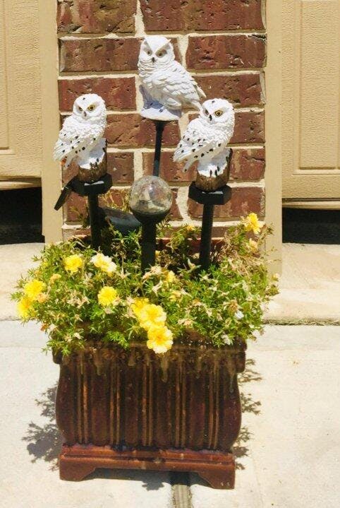 El diseño del búho está muy bien hecho, con buenos detalles. No se ve para nada barato y decora bastante el antejardín.