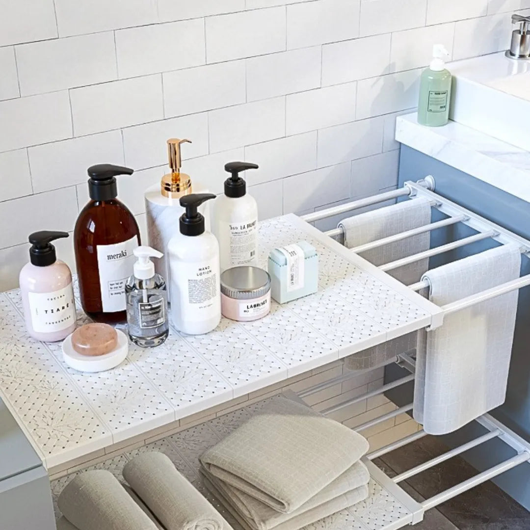 Versión de 73–125 cm de largo. Se expande hasta encajar y queda estable incluso con las esquinas más descuadradas.ORDENA MÁS, OCUPA MENOS