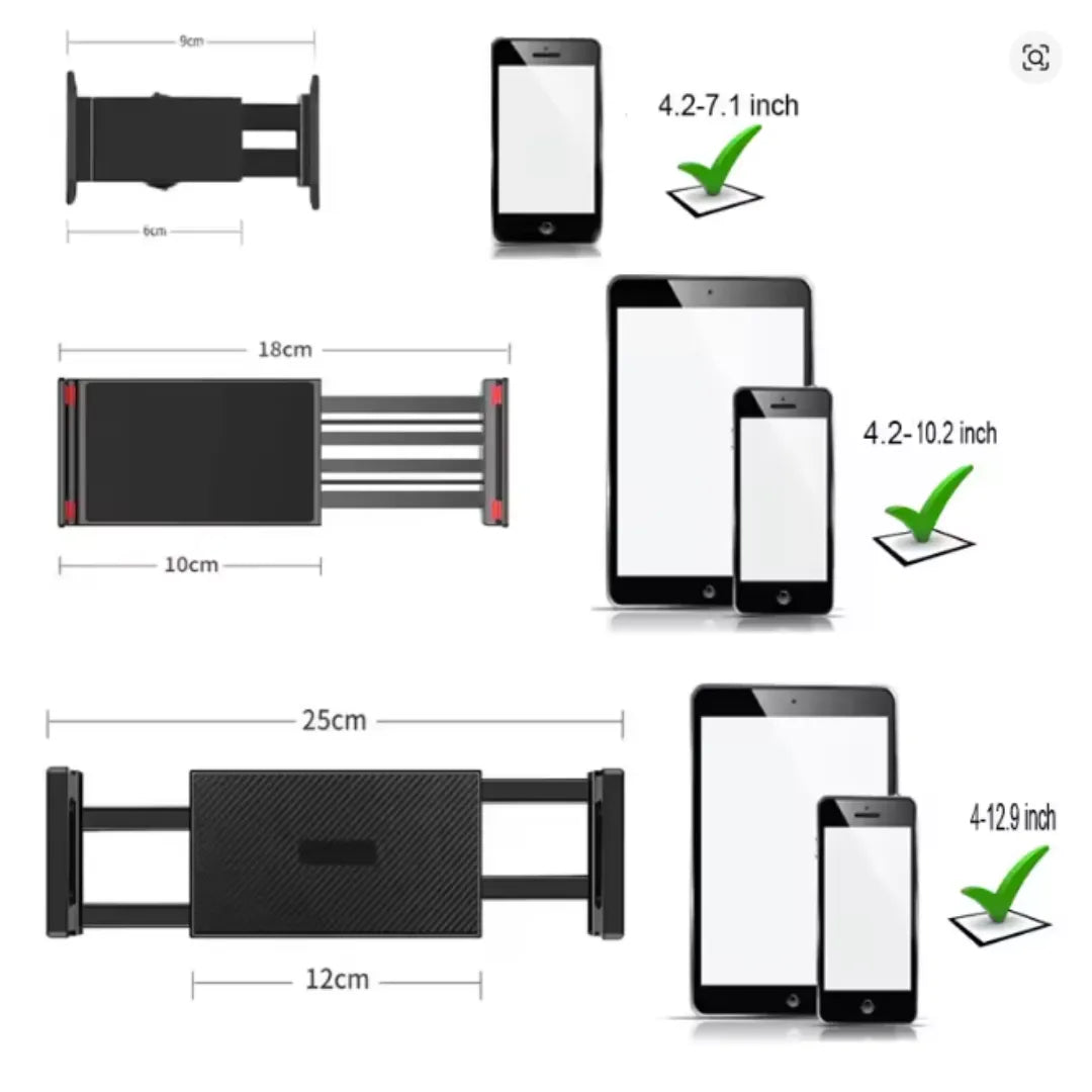 Funciona con celulares, tablets y otros dispositivos livianos, manteniéndolos seguros y bien sujetos.